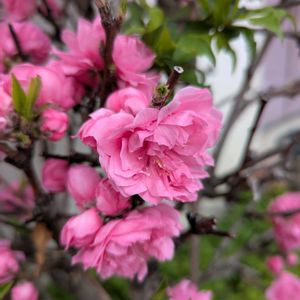 ハナモモが満開です。 十二単が咲き始めました。 わんわん祭りですね。 眠そうなお顔で参加します。る