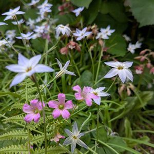アジサイ花壇に満開に増殖してしまったハナニラ ここまで増えると見事ですね♡♥♡