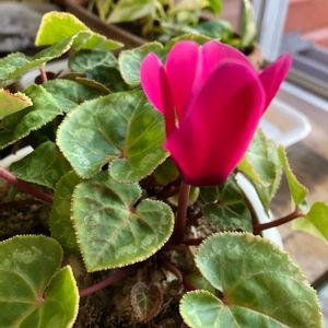これも、会社の事務所からですよ。4回目かな⁉️小さな鉢植えの シクラメンのお花🌸が咲きました。下の方には小さな蕾が幾つか あるのでお花が咲いてくると思います😊😍🥰何もしないですが 水だけはかかさずに‼️とても可愛らしいんです🤣🥰