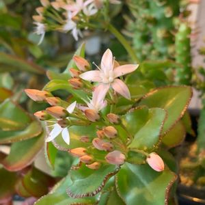 多肉と思って連れて来たけど… もちろん、そこは宮城にある完全なる多肉販売のハウス。 3年目…ようやく花が咲く〜と思って… 咲きました❣️ でも、完全なる金のなる木花🌸 金のなる木も多肉だけど葉っぱ🌱がまるで違う??? お名前なぁに?