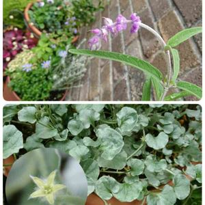 アメジストセージ🌼 小さいけど、漸く咲きました٩(๑ˆOˆ๑)۶♡💕 シルバーフォール(ダイコンドラ)🌿 良く見たらモフモフに包まれた お花🌟がチョコチョコ咲いてます❀.(*´▽`*)❀.