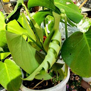 ✨モンステラ✨ くるくるドリル発見🎵 冬の間今まで、2階の誰もいない部屋に置いてたモンステラ🍀 天気もいいし暖かくなって来たから狭い小さな庭へ出しました🎵