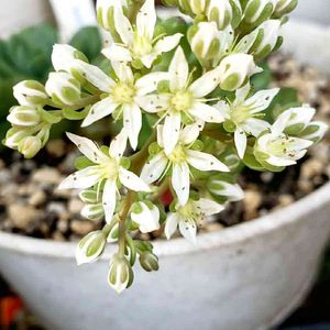娘が選んだ春萌、お花が咲いた🎵 可愛いじゃないかぁ💓💕 今年は多肉にたくさん花芽がついてるから嬉しい🎵😍🎵 ルンルン気分になるね😍🎵🎶