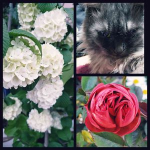 大手鞠のお花が白くなり始めました🎵 真ん丸で可愛いぞ😊💓💕