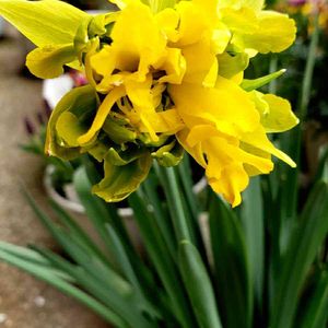 八重咲きのスイセン 旦那の実家から持って帰って植えました✨ こんなスイセンあるんだぁ😒