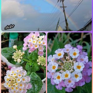 1⃣今日のお花 🤍🩷ランタナ🤍🩷 さっき仕事帰りに虹🌈が出てました🎶 2️⃣ミセバヤ ずっと蕾だったのに気が付いたら開いてました😂 3️⃣マディバ🌱⋆。 リベンジで購入🤭 4️⃣桃太郎🌱⋆。 3つ目お迎え🤭 5️⃣ムスカリ お目覚めしてました😁