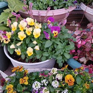 1⃣今日のお花 🤍カラスウリ🤍 2️⃣八重咲きビオラ 🩷ルナ.ドゥーブル🩷 3️⃣八重咲きカルーナとビオラももかの寄せ植え 4️⃣クリスマス用寄せ植え コニファー🎄*⋆.ガーデンシクラメン❤️.ビオラ 💜💛 🩷 5️⃣ハツユキカズラ 色付き始めました🩷