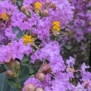 ♡ 藍さんガーデン の仲間たち ♡ ♣ サルスベリ(2番花) 次から次へと花が上がって来ます。 先日の頭でっかちも綺麗に生まれ変わりました。 まだまだ楽しませてくださいね〜🩷💜🩷💜