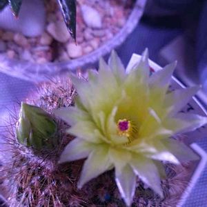 今晩は🌠 多肉サボテン🌵棚の 奥で 中々 水やりも 忘れがちの だった 「バンブリエ」さん💐 蕾が 大きく なって 芯が 赤い 、クリーム色の 美しい花 でした。🤭💝