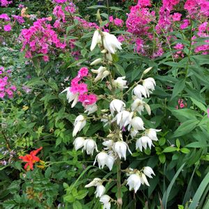 大きさを感じて頂きたくて、友達に一緒に写ってもらいました。 右下の写真で、葉から白い糸が出ているのが見えるでしょう? それが名前の由来との事です。 花が沢山咲いていました。 百合が原公園にて。