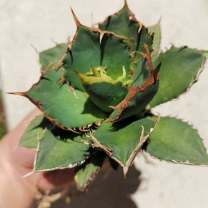 食人植物🐯 ではありません🙅🏻むしろ舐めさせてください🤤(いや、今は農薬着いてるから止めとけ( ᯣωᯣ )) 何故か時間軸が巻きもどるという謎のpostですが、昨日の夜な夜なアザミ🐴対策のためディアナ片手に徘徊中📷 なんか、昔のバイオハザードの映画であった、顔がパカッと割れて口が出てくるゾンビみたいじゃない?🤣 ディアナ…2500倍希釈ってどんだけやねん🤣 霧吹き1杯に1滴でも多いわな😅 一生もつんでなかろうか🤣 屋外管理シーズンになりましたので皆様、殺菌殺虫はお忘れなく‼️来週でいいっか…は厳禁ですよ🙅🏻 また、日中や高温下での散布NGなものもあるので説明書をよく読み用法用量を守ってお使い下さい🙇♂️ アガベーちゃんの場合、薬害出たら目立たなくするまで数年かかるので大変ですよね😅 農薬散布日は翌日まで日に当てないと言う人もいるくらい🤔 曇りが続く日にやっとくとか、夜のうちに済ませておくとか。色々あると思います💡 うちは先週はオルトラン撒いて、今週はディアナで、来週はベストガードって感じです🤔 種用にホーマイ買ってるけど、これって子株の殺菌にも使えるんかな🤔出来れば殺虫系と混ぜちゃいたいんだけど…