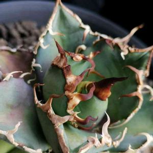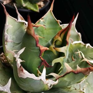見て🤣 どっちもオテロイの種から出た子🤣🤣🤣 成長するにつれてどんどんチタ系から離れていってるwww 絶対取り違えてるよね🤣 これは… 台湾のアガベ本と見比べても同じのがない🤔 セルシーとかアテナータに近いけど…この縁どりのような赤色の鋸歯は? バーントバーガンディっぽい色かな🤔 少なくてもチタ要素は0‼️