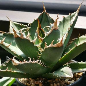 アガベの日 爪棘エッジの日参加です🙋🏻♂️ 成長すると四角い鋸歯の現れる鳳凰と同型タイプのインドネシア産のノーネーム。 同じに育つなら私はノーネームで十分です🤣 やっと雰囲気出てきたかな🤔