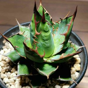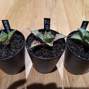 錦の日🙋 Agave Burnt Burgundy黄覆輪 オテロイ以外にも良いアガベはある✨厳つさだけが魅力ではないと思うのです🤗 この子の親は成長するにつれどんどん斑が広くなり、半分ほぼ糊斑(。 >艸<) ま、斑は同じにならないだろうけど、まぁ、こんな子株なのに既に美しい✨ 斑の沼は深いっすなー… アガベ界隈はさらにマンガべを混ぜたブラットスポットなる物も登場して正に混迷…どれが市場で生き残ることやら… と、思いつつ次は血雨雷神なるハイブリッド(見た目はほぼ雷神の形に血雨の赤斑点が禍々すぃ✨)が欲しくなってしまってる(。 >艸<)