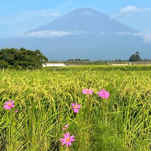 今朝の富士山と秋桜 (2023.8.21 6:44 御殿場市より)