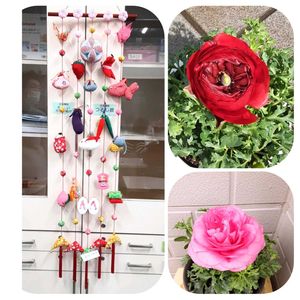 区のカルチャーの 【つるし雛】に通ってどうにか一年たちました♪︎ 最後にみんなで並べたら嬉しいものですね✌️💗 アップにすると粗ばかりですが終わると淋しいです!我が家にラナンキュラスが仲間入りです🌸