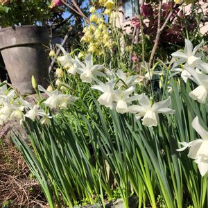 💛スイセン便り💛 🔷タリア🔷 真っ白な花が素敵ですね😊 2年目で お花が増えてる… スイセンの中では 1番のお気に入り🎶🎶🎶💞💞💞