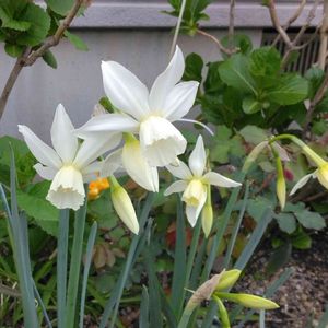 今日もお疲れ様です♬ 連日暑くなって来ましたね💦☀️ そんな中、東の庭で水仙(タリア)が咲きました♬ 涼しげな白で、羽を広げて涼んでいる様な花弁に癒されました♪ 去年の秋に植えました。今年の秋もまた買って植えたくなりました♬