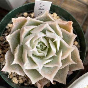 *白雪姫🌱エケベリア属 葉の色が白っぽくなってます、寒い冬のお顔ですね(*'.'*) 赤かったエッジはピンクに変化してきました🌱優しい感じの多肉さんです♡ 春まで頑張ってほしい(*゚ー゚) *bizarre farm苗 気温11℃晴れ☀️ 朝は凍りそうに冷たくて起きるのが辛いですょ(*´◒`*)