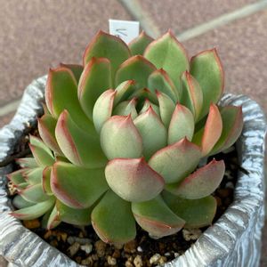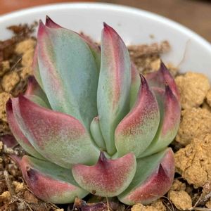 今日、買ったかわいい鉢(全体が写ってませんが…)に 何を植えようか悩んだ挙句 選ばれた エケベリア ヴィーナス 紅葉してきました🍁 子供も2つ付いて、傾いてます 群生で育てたいと思います😊