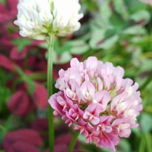 プリンセスクローバー ワインカラーとグリーンに分かれてきました。 花の色もピンクとホワイトに… 下の方から順番に小さな花が咲いていきます。