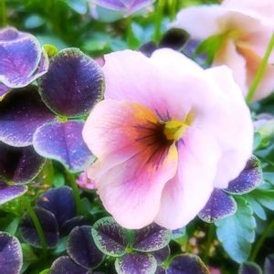🏷ピーチピチぱいに参加します 伸びたクローバーに負けじと 宮崎ビオラも伸びてきました 柔らかでちょっとくすんだなピンクです