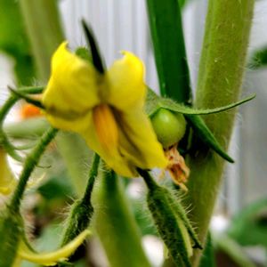わが家の野菜達🍅🫑🥔🥒🫘 トマト🍅 やっと育ったトマトの花(≧▽≦) 追加で購入した3本目でようやくです。 今年はだんご虫が植えた翌日に茎や葉を食べ尽くし1日で最初に購入した2本は終了しました😭 ジャガイモの芽🌱🥔 取り残した小さいジャガイモの芽を見つけたので、植えかえて栽培