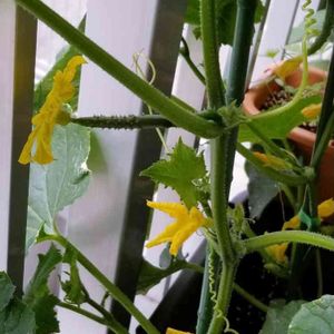 お友達のベランダで初めてのキュウリが出来たと写メを貰いました🥒 全く、植物に興味が無さそうだった人だったので、とてもビックリしましたが、ちゃんと小さなキュウリが出来ていますね❣️ あまりにもビックリしたので思わず投稿しました😄