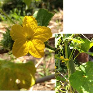 ✨😃❗️ 久しぶりの快晴です。 畑でキュウリがなっています。 今年は沢山の水分をもらって収穫出来そうです。🥰 キュウリのお花も可愛い❗️