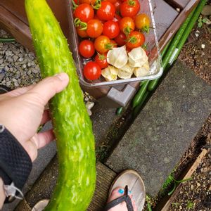 今朝、野菜を収穫しました😃 ミニトマトは酸味がほとんど無く、割と甘かったです🍅 キュウリも中身はしっかりとみずみずしくて、キュウリというよりメロンの皮に近い部分のような食感でほんのり甘いよ〜な…🍈🥰 自家製野菜ってやっぱりカラダに良さそうですね✨😊