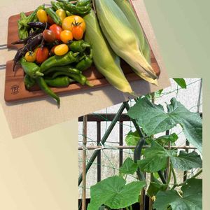 梅シロップとあらごし梅を取りに来た友人から 夏野菜をいただきました 🌽🌽🌽が甘い 黒ししとうは加熱するとミドリに変身⋆⸜💚⸝⋆😲!? どれも新鮮で美味しいです🍅🫑 今日のお花 父のキュウリ1本収穫しました🥒