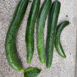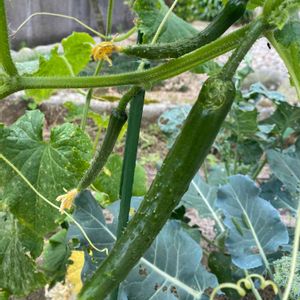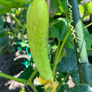 初キュウリ🥒の収穫に成功しました😊 今まで虫たちの存在で気付かなかったけど、葉っぱの裏でこんなに大きくなっていました〜😲 何か軽かったので、あまり水気のないキュウリかもしれないです💦 木酢液を撒いてから、今朝は静かな様子で白い蝶々だけが飛んで来ました🦋🙂