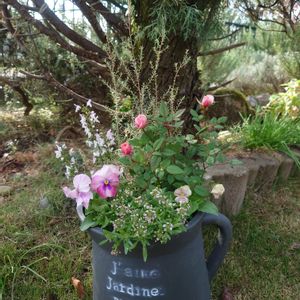 猫さんに安全な寄せ植え作りました😸💕(1〜2枚目📷) これなら、いたずら天使👼がいても安心です🎵 うさぎと本の鉢は、少し早い自分へのバースデープレゼント🎁として奮発しちゃいました😆 淡〜い色合いに惹かれてお迎えしたはずが、濃いめのピンク色に色変わり🩷これはこれで綺麗です✨(3枚目📷) 同じ『ローブ・ドゥ・アントワネット・ロココ』でも、先日📷投稿したものとは違い、こちらは可愛らしい雰囲気がします🥰