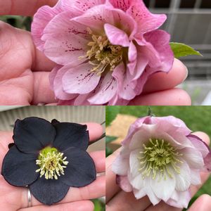 我が家のクリスマスローズたち𓂃❁⃘𓈒𓏸 昨年、2年生株を購入し迎えた3年目。 4株中3株開花しました。 冬場の追肥管理を完全に怠っていたので今年も開花しないかと思いましたが、頑張ってくれました🎶 クリスマスローズのお顔が見えない問題。 手で強引に、顎クイならぬ顔グイ🤔 キュンしてもいいですよ?笑