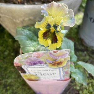 《 アンティークフリルパンジー フルール 》 昨シーズン2色株とは知らずに初めてお迎えし😅 とてもお気に入りだったので嬉しさのあまり今年は2株お迎えしてしまいました😆 まだそれぞれの相方のカラーがよく分からないので楽しみ😆同系色の2株植えっぽいかもです☺️ ②枚目は昨年のフルール
