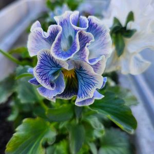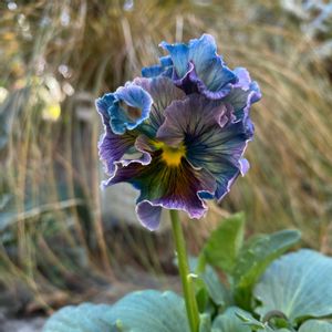 《 アンティークフリルパンジー フルール 》 3株目のフルールさん✨ どうか水色🩵消えないでー🙏 フルールさんは①ポットに2本仕立てになっているのですが 先にお迎えした2ポットが 両方ともほぼ同色の2本仕立てだったのもあり追加お迎えしました😂