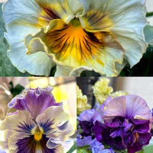 こんにちは😊 今日は午前中に止んだはずの雨がまた午後から何度か降ってきて、モッコウバラやラックスが心配です😂 ①アンティークフリルパンジー フルール 色々な色が楽しめますが、形がまとまらず、太く伸びた茎はカットしています🤗 ②豊明花き✕見元園芸 ビオラ エーデルシリーズ 値引き品を衝動買いしましたが、どの色で咲くのが正解なのかわかりません。この子も形がまとまらず、最近は種類があり過ぎて選ぶのが難しいです😅 ③華あられ 2色買ったつもりが黄色1色しか咲いていなかったのですが、やっとくすみピンクが出てきてくれて嬉しいです🩷