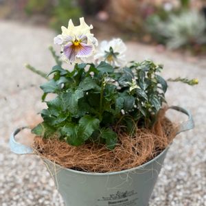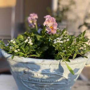 待機苗がたくさんあるので、先週からひたすら植え付け作業をしています😌 傷んだ夏越し苗や見切り品なども使うのでなかなかかっこよく決まりませんが、寄せ植えは楽しいですね😄 横長の鉢で寄せ植え。 フリルパンジー フルールと挿し芽のブルーデージー&ローダンセマム。見切り品の姫小菊とスカビオサ、ネメシアを入れて、左側にはヒヤシンスとクロッカスの球根が植えてあります☺️ 春になると後方の背が高くなる予定だけど、どうなるかな。 そして写真はどうしても白がとんでしまう🤔💦