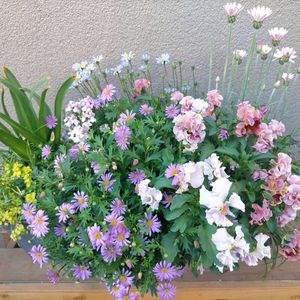 昨日は寒風の中、 鼻水すすりながら待機苗の解消を。 白地にピンクやブルーが差すお花を 集めてみました。 フルール フェデネージュ ルミエール アイクルール 異なる大きさや形のお花を 色で繋げる寄せ植えが好きです。