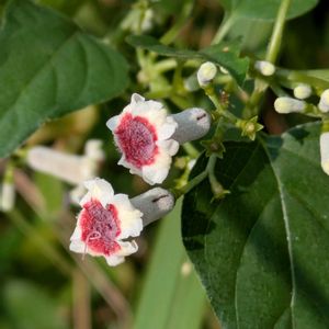 こんにちは✋ ヘクソカズラ💗🤍 花の中心は 鮮やかな赤色 花びらの縁が ヒラヒラしてます✋ 花の筒状の部分も 可愛いです💠 8月24日に 撮影しました📱✨️