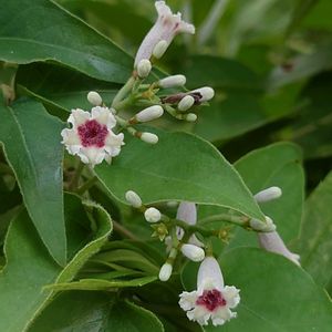 今日のお花の🤍ヘクソカズラ🤍 ・ヘクソカズラはアカネ科ヘクソカズラ属の蔓性多年草。 ・夏に中心部が赤紅色の白い小花を咲かせます。 ①〜③8月、9月に撮影のヘクソカズラのお花🤗💞 ④11月に撮影のつやつやした黄褐色に熟したヘクソカズラの実で、門扉に巻き付いていたものを撮りました🤳リース等にも使われるようです。