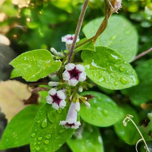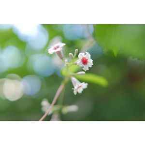 繁殖力は旺盛だけど花は白く小さくて真ん中に赤い色の模様が素敵なヘクソカズラ素朴だけどこの暑さを必死に健気に生きるその姿を見守っていたいと思った。花は健気で儚い命大切に育て愛していこう。