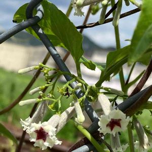 今日のお花🏷𓈒𓏸︎へクソカズラ 種から育てたスダチ🪴は花も実もつかない。今年はへクソカズラ🐍に絡まれる役。 雨上がりの小庭の夏の朝です。 08月23日📸