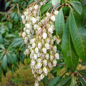 こんばんは⭐︎ アセビ(馬酔木) 雨降りの休日に白い馬酔木と出会いました😆🎶 スズランに似た可憐なお花💕 雫💧がついて、またまた素敵✨✨ 馬酔木は、冬の終わりの暖かい頃から春先にかけて、濃い緑色の葉が茂る枝先に白い小さな壺形の花を総状に沢山つけます✨ 房がいくつも垂れ下がって木を覆うように次々と咲きます❣️ 花(木)の名は、食べると足が痺れることからつけられたアシビが転訛してアセビ。 漢字の馬酔木は、馬が葉を食べると酔ったようになることからあてられています‼️ 花言葉🌼 「あなたと2人で旅をしよう」 こんな感じの人と旅をしたら楽しいだろうという意味でつけられているそうです🍀 こんな感じの人⁉️ ハラハラ、ドキドキ💓する美しい人⁉️
