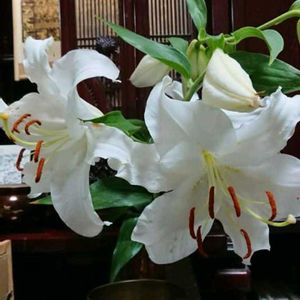 数年前に畑の横に植えた百合の球根。 それ以来毎年この時期になると咲いてくれる✨ 今年は一本に7つも花やつぼみが✨✨❗ 昨日は実家のお仏壇にお供えして、今日は我が家のご先祖様に😊 芳しい香りとその咲き姿は、日本の夏の風物詩。