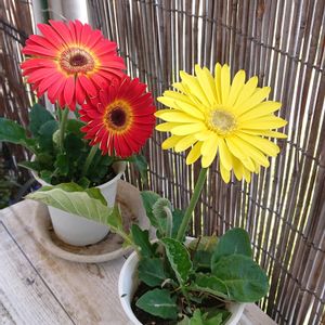 無事に冬越しした花たち 無事に冬越しして三度目の開花のガーベラ😊😊 大輪の花を咲かせました😊😊 小さいのも三度目の開花😊 ブライダルベールもつぼみをもちはじめて三度目の開花を迎えようとしてる😊 二年目のオウバイやアナベル、、、 室内で冬越ししたクレロデンドロム などなど、、、、 益々花盛りの我が家のベランダです