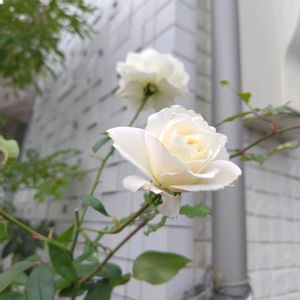 真っ白な🤍🌹🤍薔薇🤍 昨日…🚶♀️🚶♀️🚶♀️で… いつもの…バーバーショップ前に… きれい〜(*^^*)✨️🤍🤍🌿🤍🤍🌿🤍🤍🌿🌹🤍 🏷️白い水曜日♡ 🏷️白い貴婦人✨️ 🏷️純白マニア 🏷️水曜ローズショー 🏷️オシャレな粋曜日 の花 🏷️薔薇の香りに酔曜日