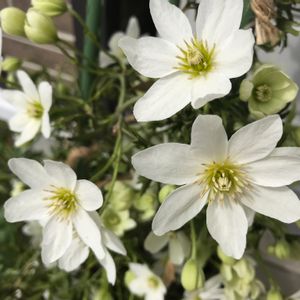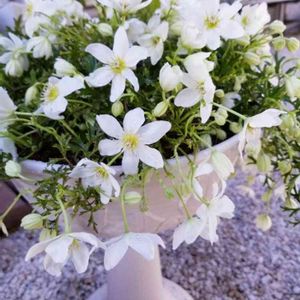 園芸店では色々なクレマチスを見かけるようになり、どれにしようか悩みます。 今回は、白いお花が可愛いこの子をお迎えしました🤗