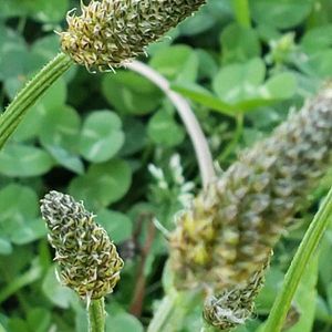 🌿ヘラオオバコ🌸 (オオバコ科 オオバコ属) その下には🌼コメツブツメクサ🌼 (マメ科 シャジクソウ属) 今回は、慌てず咲いたのを🙏🌸 要注意外来生物かぁ~💦 可愛いのにな🌸 おまけに 花粉症😷の原因 になるのね。 風に揺れるのは花粉飛ばしたいためか~😅 でも、 ハーブって言うらしいよ😊 発汗作用 ダイエット 咳止め 気管支炎にも効くとか。 食用 家畜の肥料にも。 色々 役に立ってるね😊 すごいんだ😊 5/10