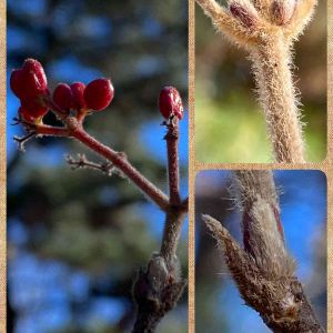 1月1日撮影 池淵史跡公園 赤い実がありました🥰! 葉がないのでなんだかよく分かりません。 …でも、そこは葉痕観察の良いところなんですね!?葉痕や冬芽を見ると、なんだか分かるようになることがあるんでしょう。 このふわふわな芽はガマズミかな?と思うのですが、いかがでしょうか? 実のつき方でもわかりますか? (2月5日更新) こちらもすぐに かしさんより確認していただきました🙏 ガマズミでOKですね! もふもふが暖かそうです☺️
